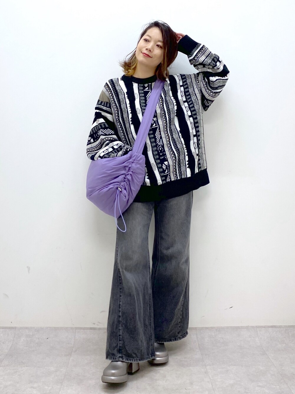 ⭐各アイテムのおすすめポイント  ̄ ̄ ̄ ̄ ̄ ̄ ̄ ̄ ̄ ̄ ̄ ̄ ̄ ̄ ̄ ̄ ̄ 【トップス】 トレンドの3Dニットは立体的な編み地で目を惹きますのでモノトーン合わせでも決まります◎ 【ボトムス】 安心安定困ったらこれ履くくらい愛用のフルワイドジーンズはこの色落ち感と斜めの切り替えが美脚見えのポイントです 【コーディネート】 ニット+デニムのシンプルなコーディネートにはショルダーバッグ斜めがけで重心を上に持っていくとしっくり決まります STAFF BOARD▶︎Chisa *アラフォー低身長なりの大人カジュアルスタイルを楽しんで毎日更新しています!ぜひフォローお願いします◡̈*