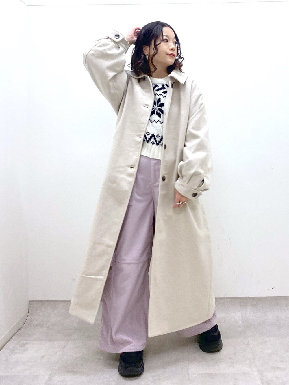 Chisa(PAGEBOY長崎アミュプラザ店)のチェスターコート「ケープツキボリュームコート」を使ったコーディネート