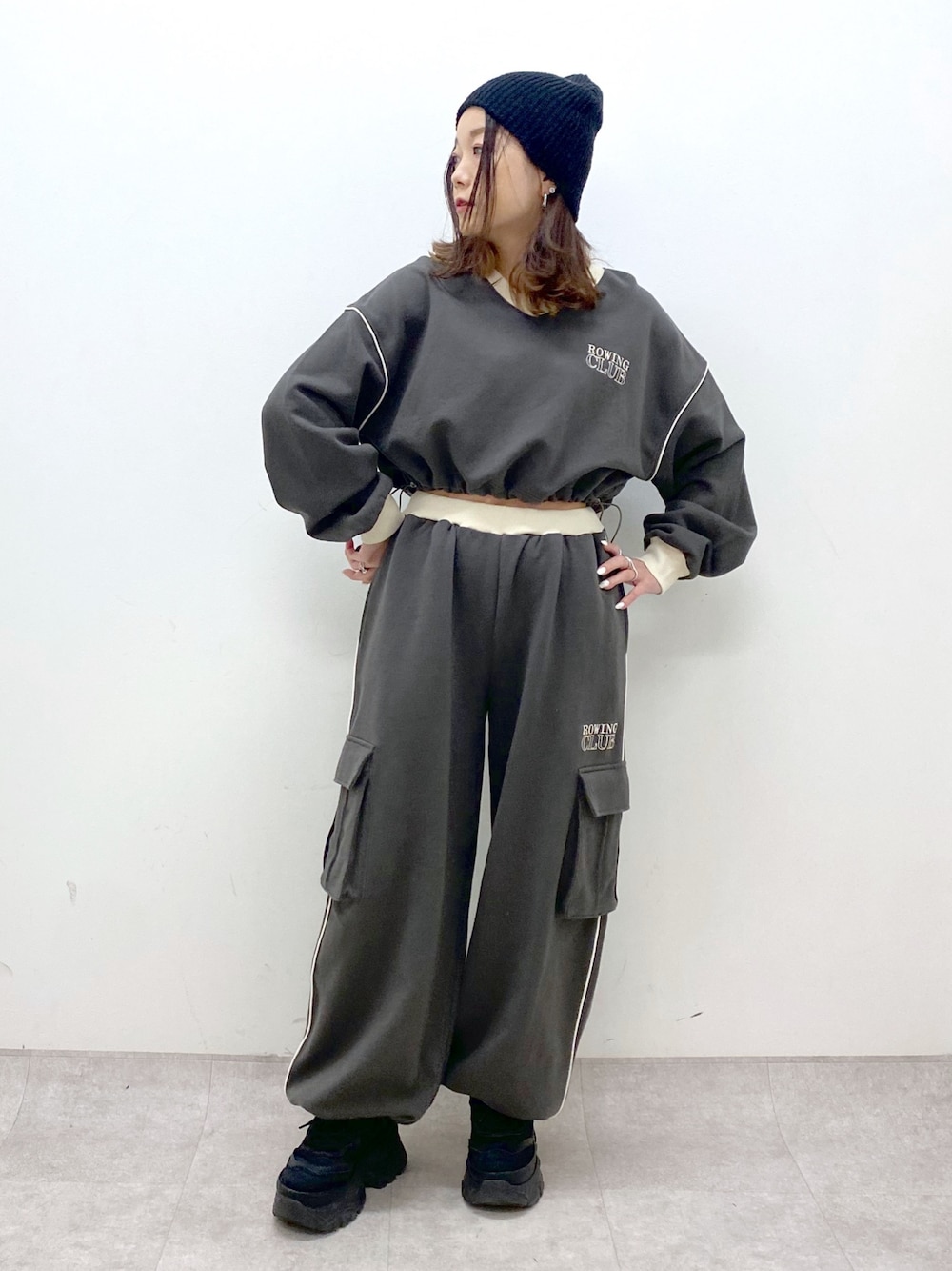 Chisa(PAGEBOY長崎アミュプラザ店)のスウェット「PAGEBOYLIM/バイカラーVショートプル」を使ったコーディネート