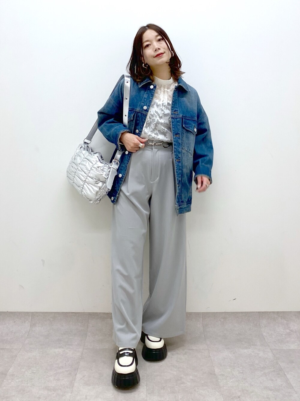 きれいめスタイル×デニムジャケット  ̄ ̄ ̄ ̄ ̄ ̄ ̄ ̄ ̄ ̄ ̄ ̄ ̄ ̄ ̄ ̄ ̄ 【ジャケット】 ルーズに羽織れて身頃はすっきりまとまるシルエット 新色の加工ブルーの古着のような色褪せ感でガーリースタイルが垢抜けます 【ボトムス】 低身長さん大歓喜な丈のワイドパンツです🙌 裏地なし(白ストライプ以外)、ウエストゴムのイージーパンツ、シワになりにくいのでデイリーに着回しできます STAFF BOARD▶︎Chisa *アラフォー低身長なりの大人カジュアルスタイルを楽しんで毎日更新しています!ぜひフォローお願いします◡̈*