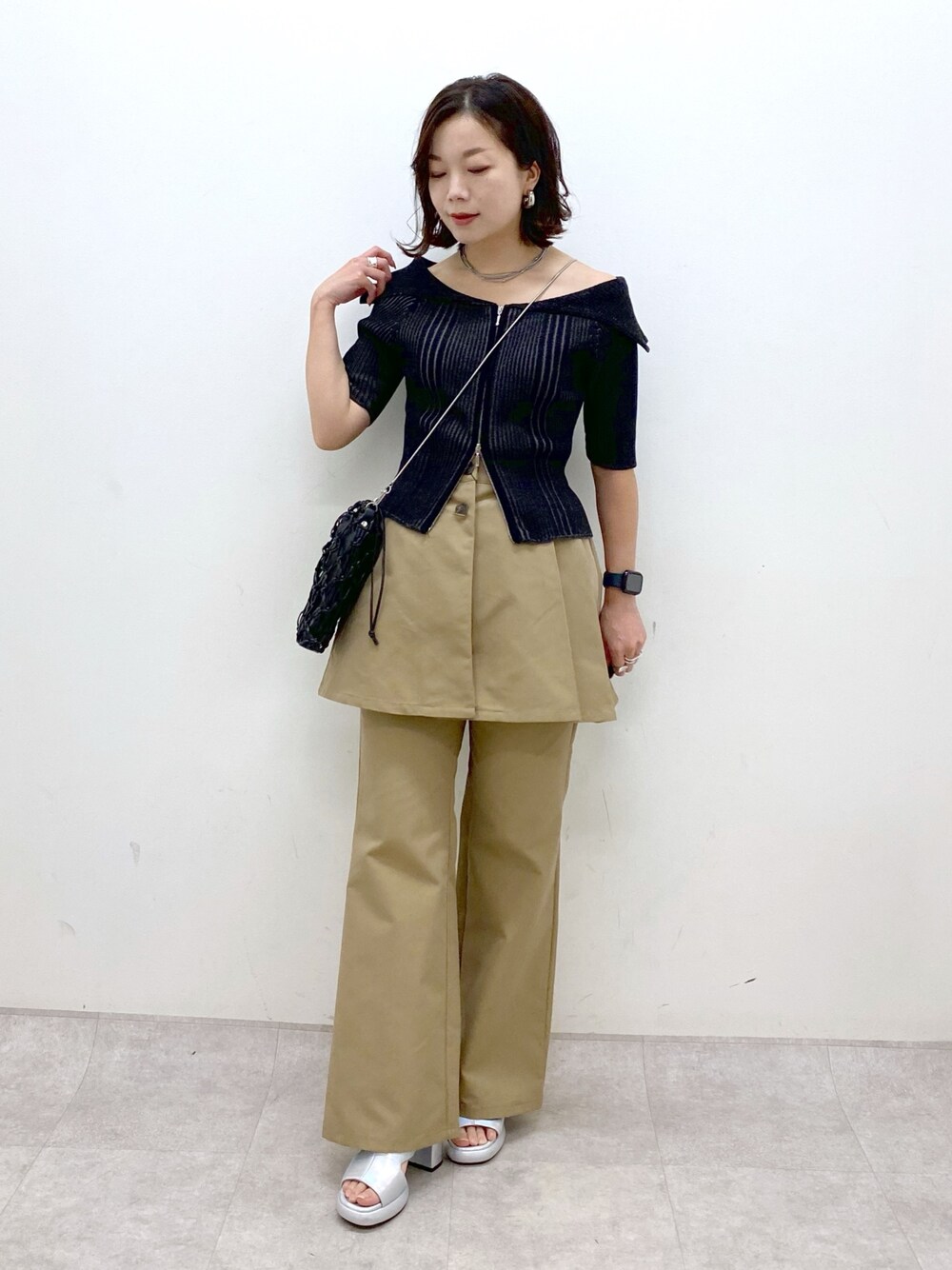 Chisa(PAGEBOY長崎アミュプラザ店)のニット/セーター「ダブルZIPリブオフショル」を使ったコーディネート
