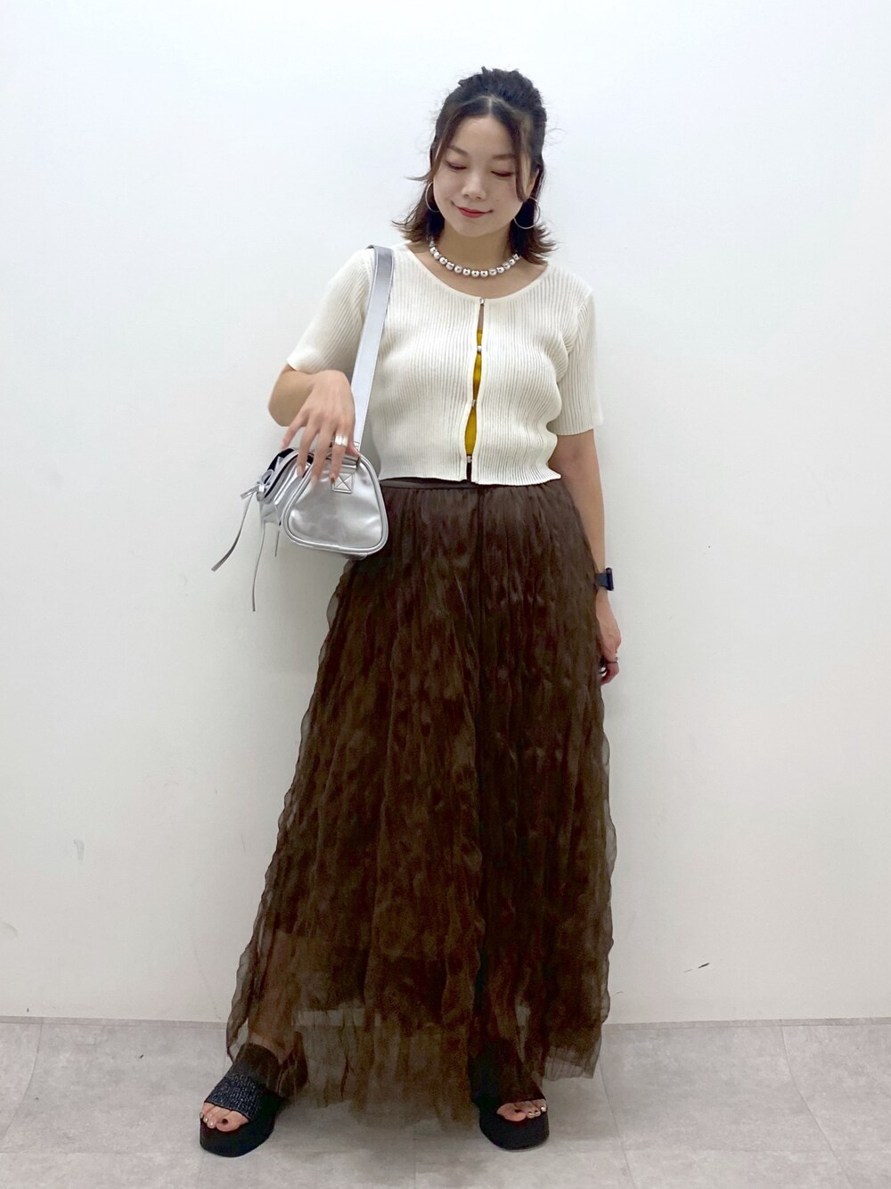 Chisa(PAGEBOY長崎アミュプラザ店)のスカート「シボシボプリーツスカート」を使ったコーディネート