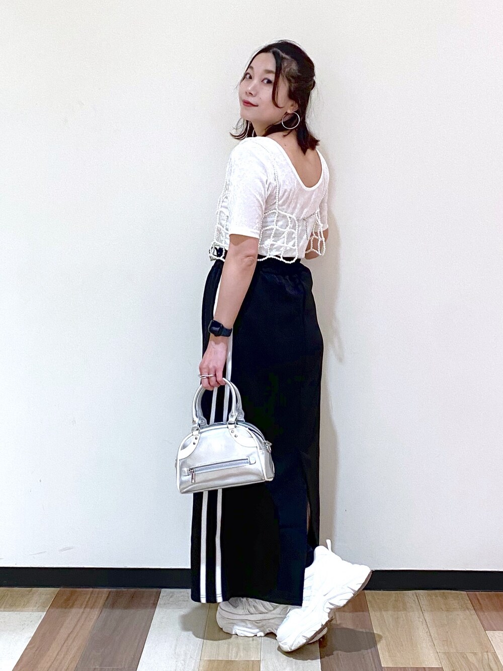 Chisa(PAGEBOY長崎アミュプラザ店)のスカート「カットツイルナロースカート」を使ったコーディネート