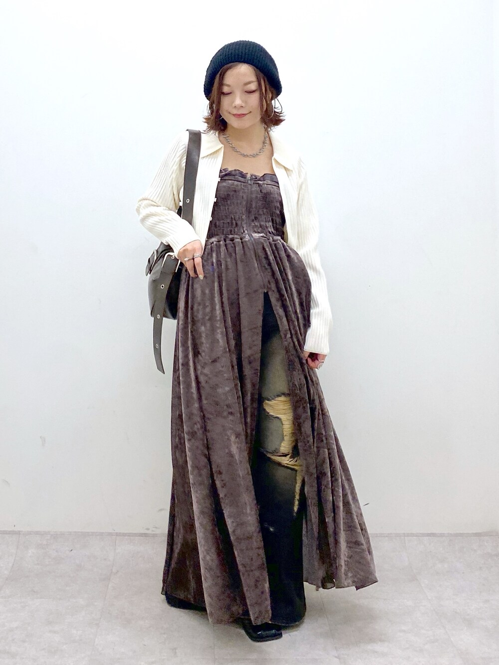 Chisa(PAGEBOY長崎アミュプラザ店)のワンピース「ベロアチュールキャミワンピース」を使ったコーディネート