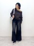 キラキラ映えのブラックコーディネート🐦⬛  ̄ ̄ ̄ ̄ ̄ ̄ ̄ ̄ ̄ ̄ ̄ ̄ ̄ ̄ ̄ ̄ ̄ ̄ ̄ ̄ 【トップス】 キラキラした糸のシャギーニットは、ふわふわな着心地です オフショルでも着られますがそのまま肩を出さずに着ても、デコルテラインがすっきり見えます 【ボトムス】 トレンドのキラキラ×ラインデザインが目新しいデニム セミワイドの美脚シルエットなのでスタイルアップできちゃいます STAFF BOARD▶︎Chisa *アラフォー低身長なりの大人カジュアルスタイルを楽しんで毎日更新しています!ぜひフォローお願いします◡̈*