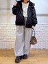部屋着に見せないカジュアルスタイル  ̄ ̄ ̄ ̄ ̄ ̄ ̄ ̄ ̄ ̄ ̄ ̄ ̄ ̄ ̄ ̄ ̄ 【アウター】 トレンドのファーブルゾンとして着て、飽きたら(?)ナイロンブルゾンとしても着られるリバーシブル仕様 どんな色柄ものでもカッコよく締めてくれるのはやっぱりブラックですよね🐦⬛ 軽くてゆったり羽織れるので今年の冬の通勤はこれに決まり✨ 【トップス】 オフショルでもUネックでもVネックでも着回せて、着丈も選べます! 着心地滑らかでチクチクしないニットでお洗濯もOKなので、 絶対使える&色ち買い間違いなしな優秀ニットです Fサイズ→着丈70cmでヒップまで隠れる安心丈 身幅もゆったりですが、柔らかく落ち感が出るのでオシャレなルーズ感に 【ボトムス】 甘やかしサイズ感のゆるだぼスウェットパンツ ウエストと裾のドローコードでサイズ調整もできるので気分に合わせて裾のシルエットを変えたり、ローライズにしてメンズライクにアレンジができます *アラフォー低身長なりの大人カジュアルスタイルを楽しんで毎日更新しています!ぜひフォローお願いします◡̈*