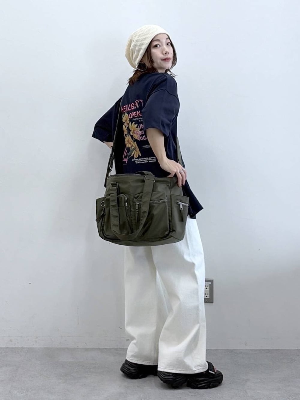 Chisa(PAGEBOY長崎アミュプラザ店)のボストンバッグ「《UNISEX/PCポケット付き/500mlペットボトルも入る》10ポケットボストンバッグ」を使ったコーディネート