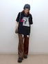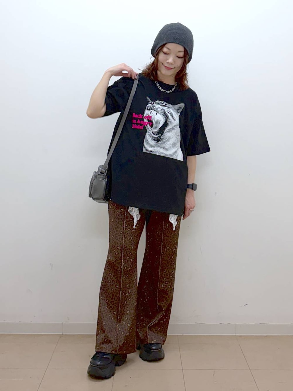 レイヤードで一癖アニマルコーディネート🐈🐆  ̄ ̄ ̄ ̄ ̄ ̄ ̄ ̄ ̄ ̄ ̄ ̄ ̄ ̄ ̄ ̄ ̄ ̄ ̄ ̄ ̄ ̄ ̄ ̄ 【トップス】 猫好きの方は一目惚れ間違いなしな、ねこちゃんがシャーとしてるプリントのTシャツ 配色もおしゃれなので猫好きさんじゃない方も是非、、笑 男女兼用で着られるルーズめなフリーサイズです 【ボトムス】 何故こんなにお手頃価格になっているのか謎なくらいに持っていたら使えるイージーパンツです ジャージ生地とウエストオールゴムで甘やかしサイズ感ですが、Tシャツ合わせでも決まるシルエット 丈は結構長めのお作りです *アラフォー低身長なりの大人カジュアルスタイルを楽しんで毎日更新しています!ぜひフォローお願いします◡̈*