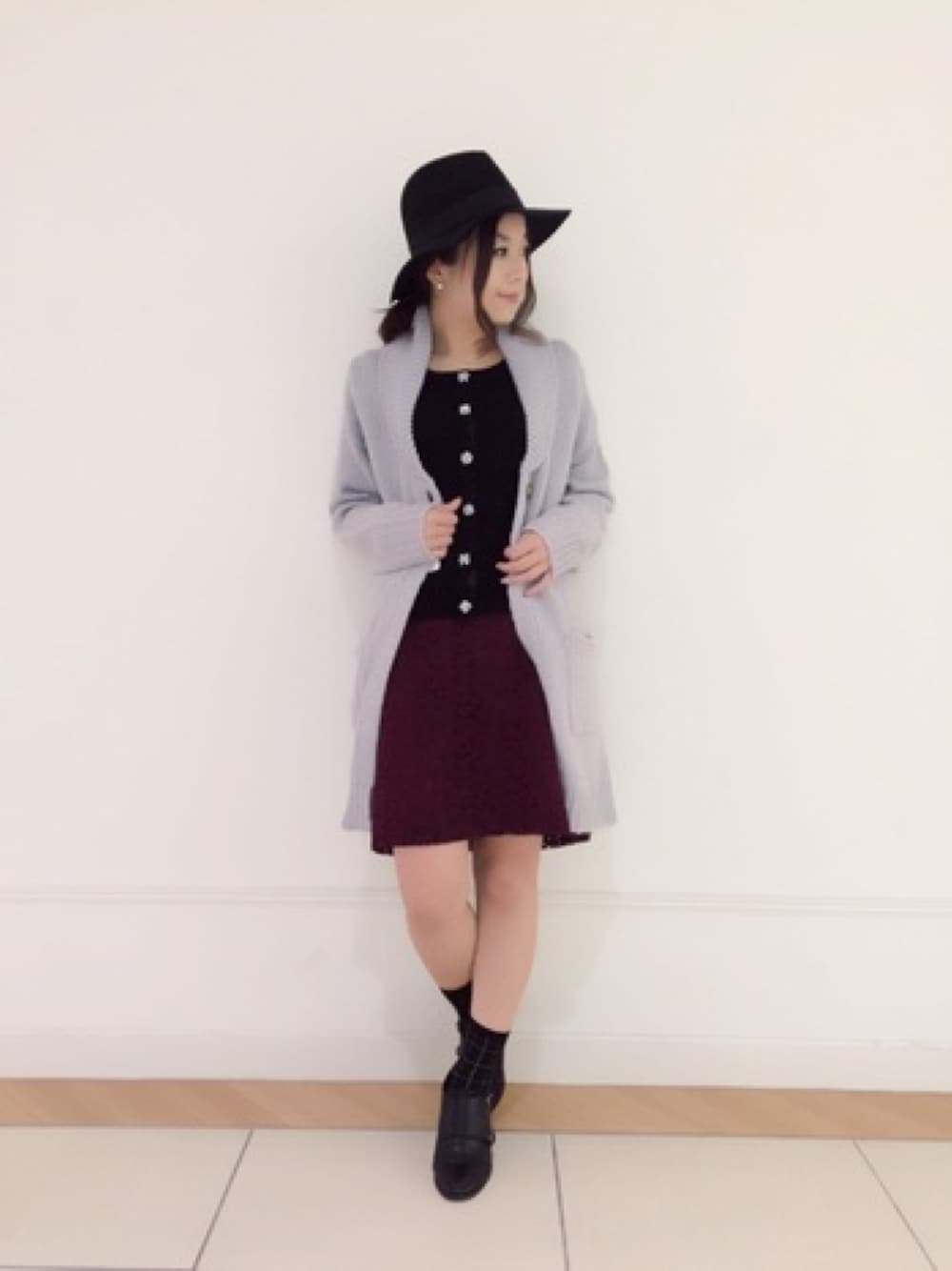 寒くなると着たくなるニットコート…♡ モノトーンコーデにはボルドーが秋らしいですね◡̈*