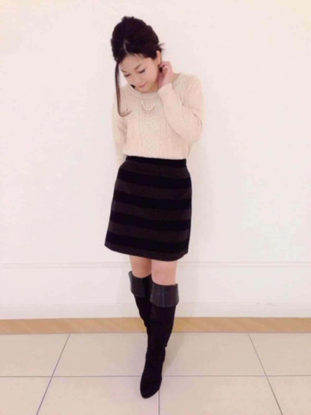 Chisa(PAGEBOY長崎アミュプラザ店)のスカート「シャギーボーダー台形スカート」を使ったコーディネート
