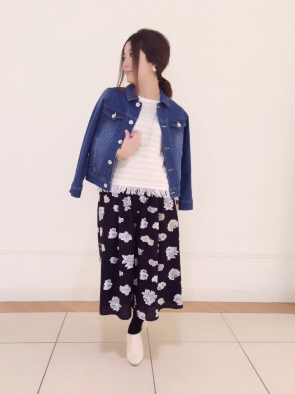 ラボラトリーワークのカタログにも掲載されてる花柄ガウチョパンツを履いてみました♪ Gジャン合わせで甘辛コーデに仕上がります^ ^