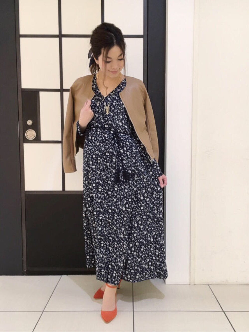 Chisa(PAGEBOY長崎アミュプラザ店)のワンピース/ドレス「紐ベルト付き小花柄マキシワンピース」を使ったコーディネート