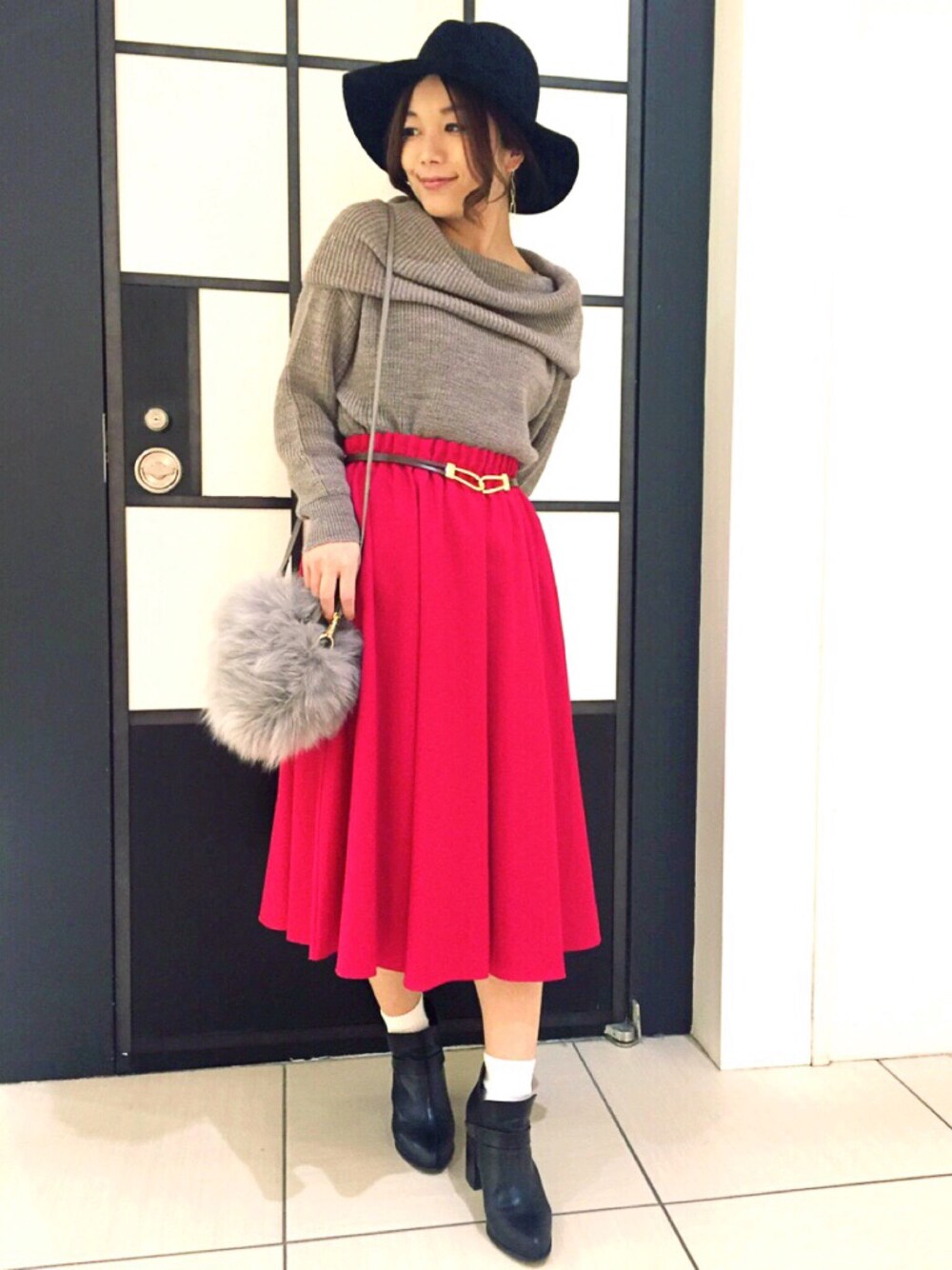 ゆるっと女の子らしいオフショルニットのコーディネートです◡̈* ミディ丈スカートで今年らしい合わせです♪