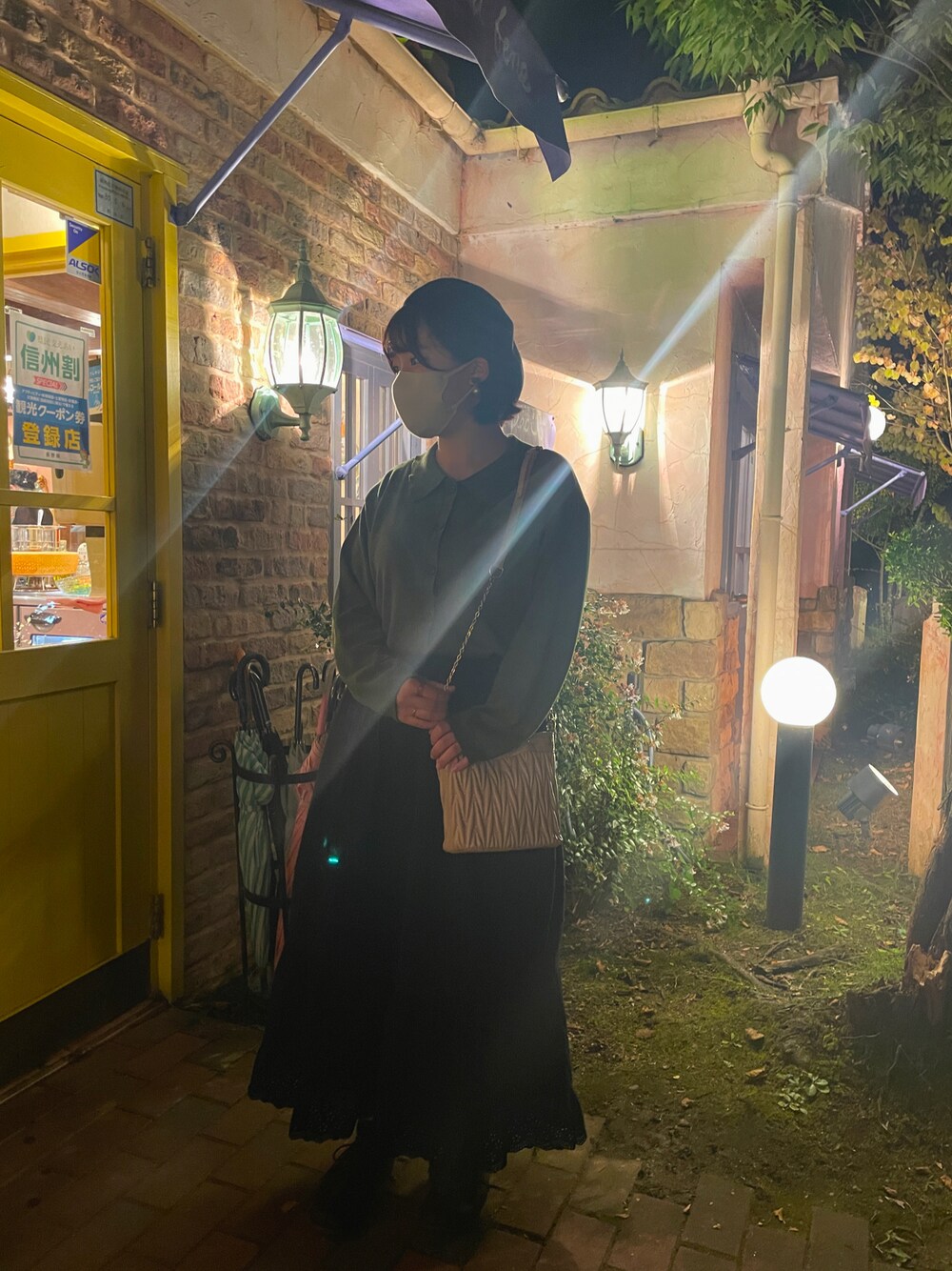 暗くて見えにくいけど、、 お気に入りのグリーンカーディガン💚 バッグ以外全部SamansaMos2🤭