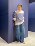 ボーダーのトップスはシアー感があり大人っぽく着用できるのが◎ 丈感が短めなのでシャツをレイヤードしたりカットソーを入れて着用するのもオススメです。 ボトムスは大人気のカーヴィーデニムを合わせてルーズなスタイリングに。