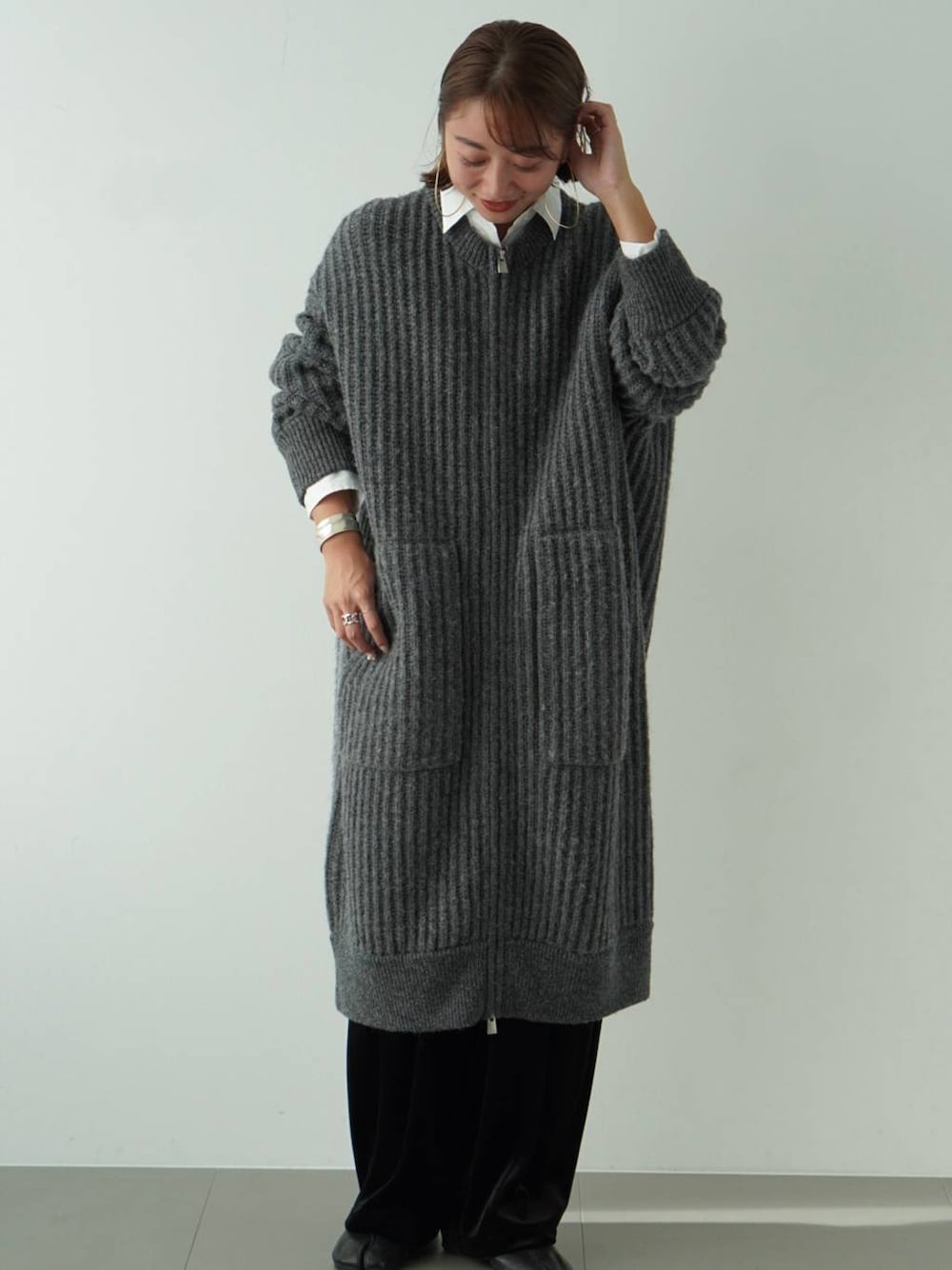 shimo(Curensology 心斎橋)のカーディガン/ボレロ「Curensology(カレンソロジー)/リョウアゼジップカーディガン」を使ったコーディネート