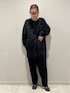 ブラックのアルパカカーデはブラックでコーディネートしてシックな雰囲気に ディナーや結婚式など色んなシーンで着用できるのも◎