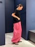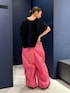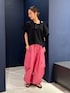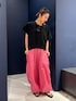 【トップス】 シンプルながら首元が程よく後ろ開きになるデザインが素敵 肩もしっかりカバーしてくれてシルエットも綺麗 【ボトムス】 暖かくなってきたら色物欲がUPしますよね♡ ピンクでも甘くならないデザインが◎ 小物なども黒で大人っぽくスタイリング