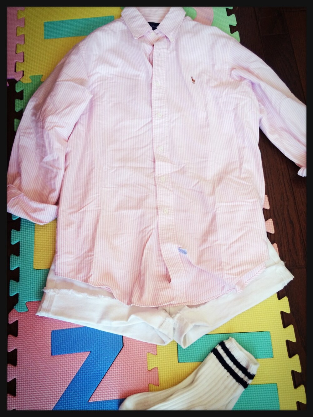 ピンクストライプシャツ.*Lalph Lauren ホワイトデニム.*Emsexcite