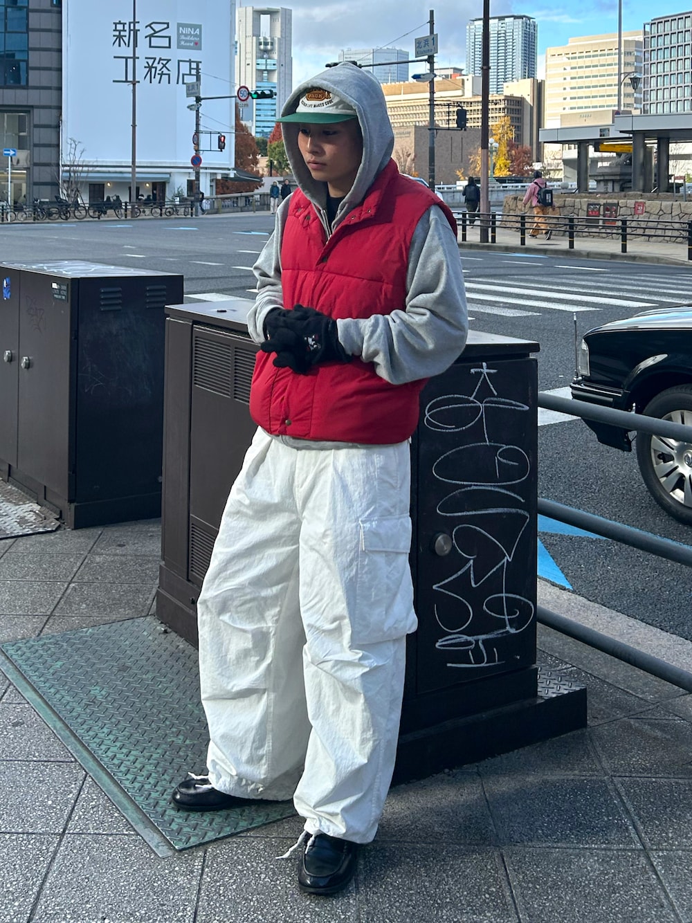 Shimoのダウンベスト「【FFEIN(フェイン)】フェイクダウンカラーナイロンベスト / ベスト ダウン オーバーサイズ 中綿」を使ったコーディネート