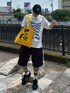 ShimoのTシャツ/カットソー「袖パイピングロゴTシャツ」を使ったコーディネート