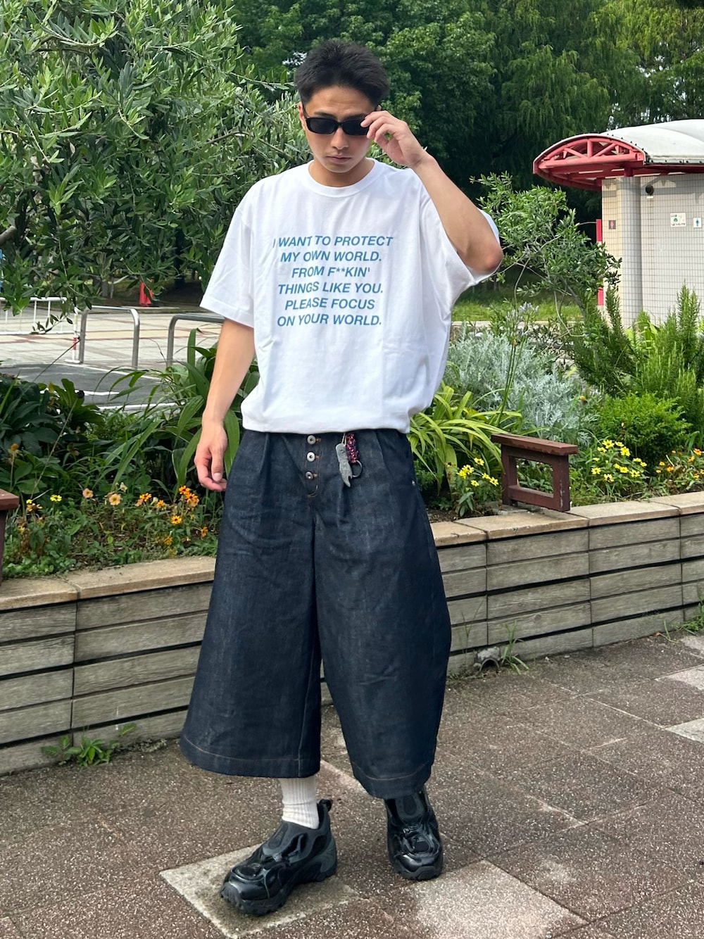 Shimoのデニムパンツ「ASSORT 2TUCK BAGGY SHORTS / アソート2タックバギーショーツ」を使ったコーディネート