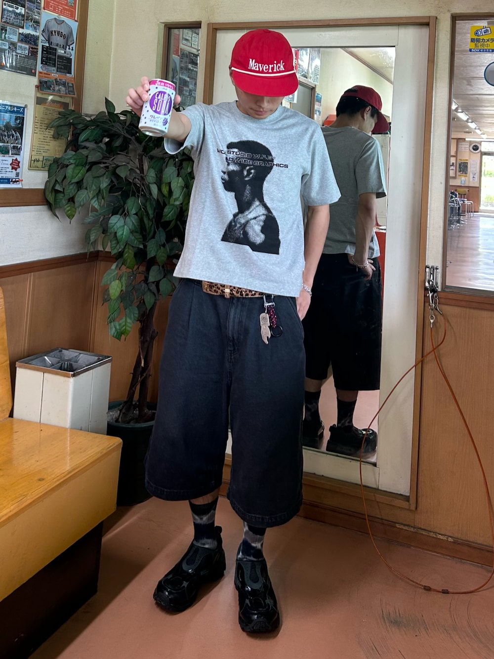 Shimoのデニムパンツ「限定展開 MR HEARTS/ミスターハーツ VINTAGE WASHED DENIM JORTS」を使ったコーディネート