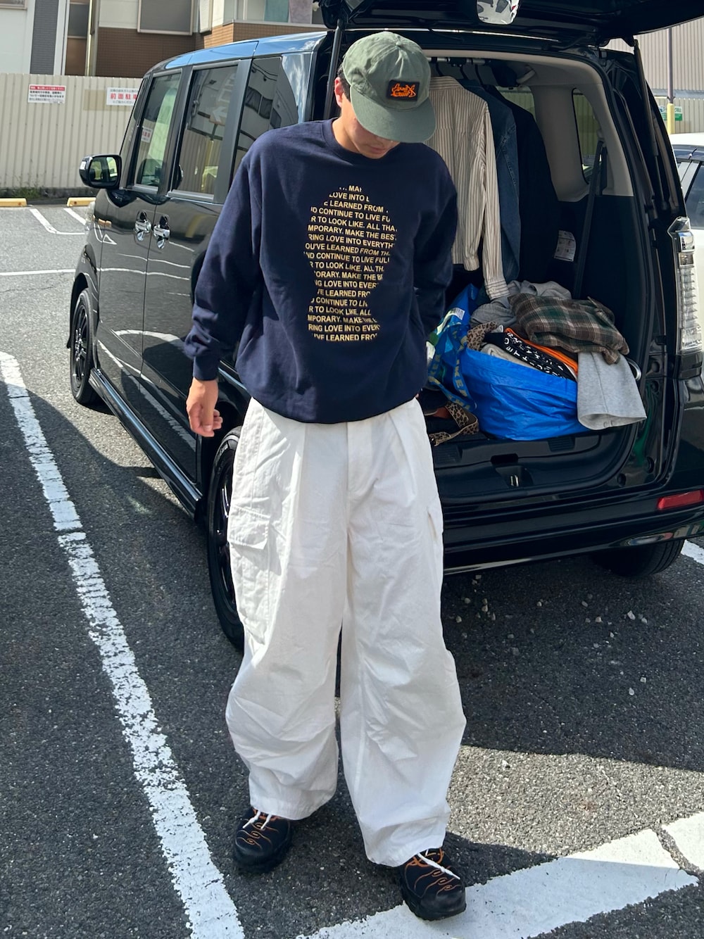 Shimoのスウェット「DRAW CODE PHONTO LOGOSWEAT/ドローコードフォントロゴスウェット」を使ったコーディネート
