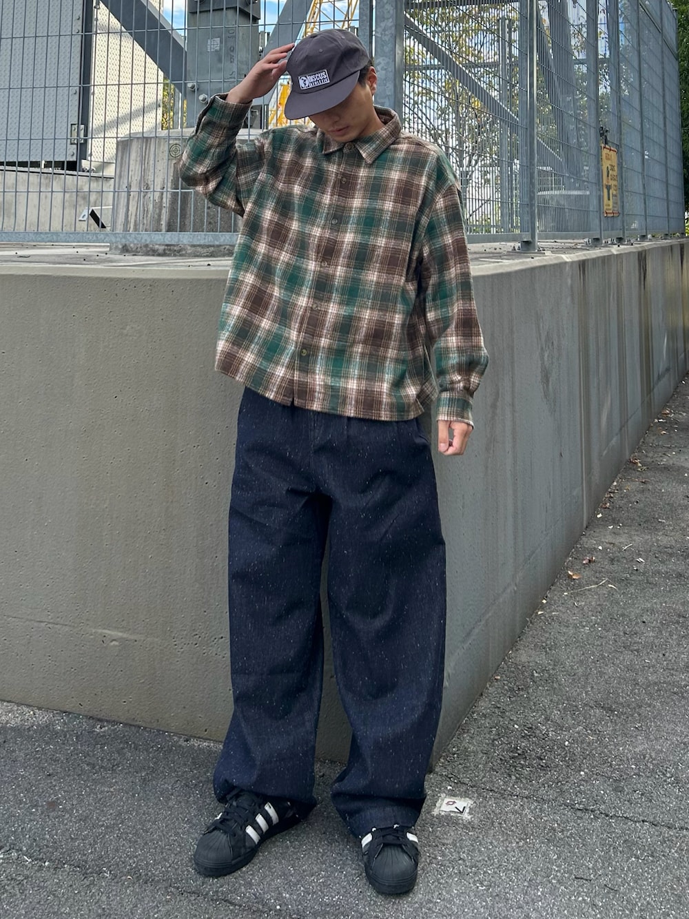 Shimoのデニムパンツ「2TUCK COLOR NEP DENIM / ツータックカラーネップデニム」を使ったコーディネート