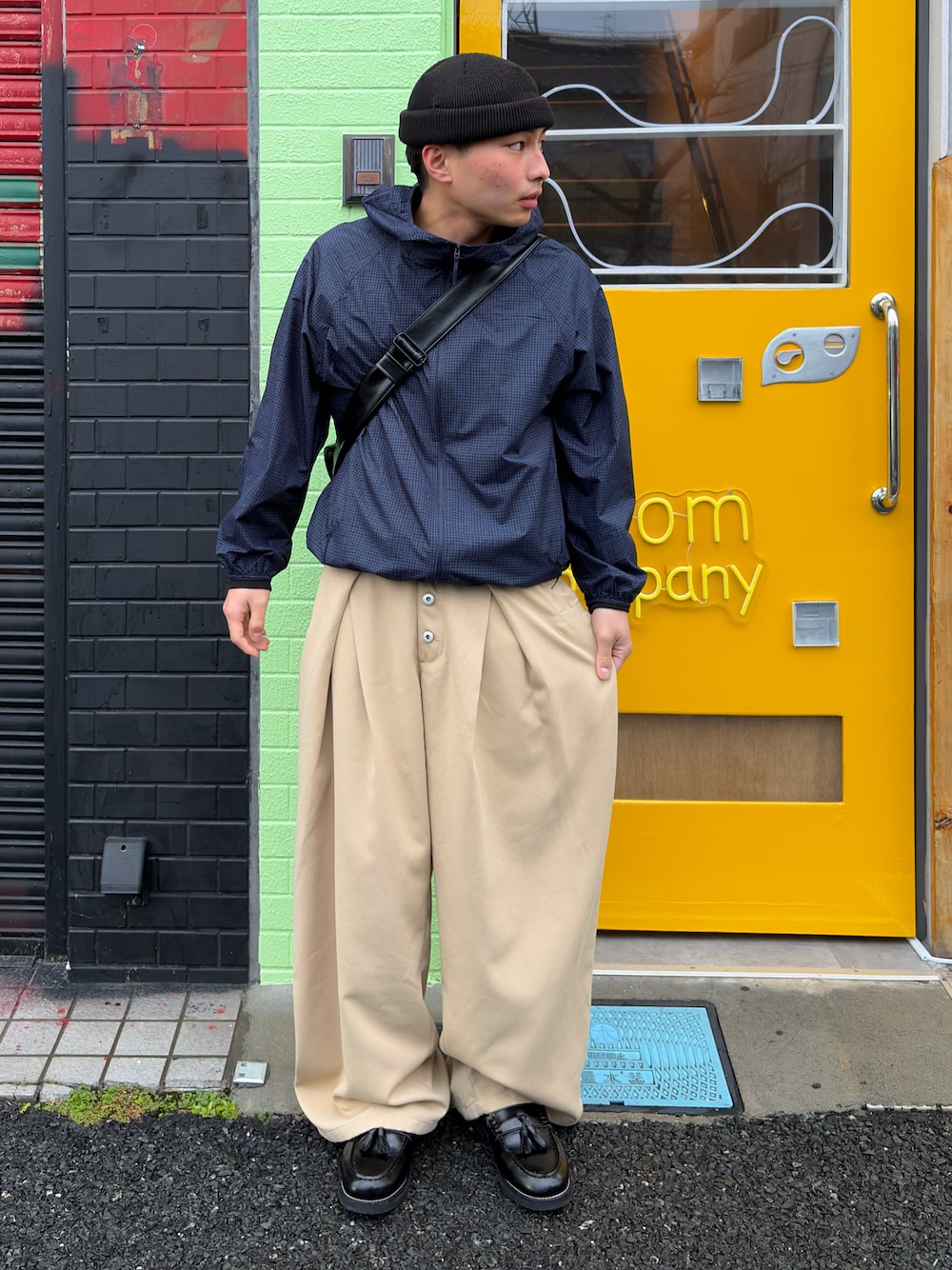 Shimoのスラックス「【新色追加】ASSORT CROSS TUCK BAGGY PANTS / アソートクロスタックバギーパンツ」を使ったコーディネート