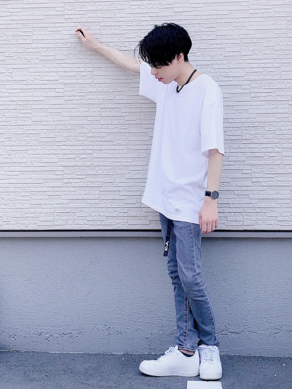 暑すぎて夏コーデになってしまいました☀️ BIG Tは定番かつ楽ですね! あえて外しのチャコールデニム フォース1 久々履いた 磨かないと(^◇^;)