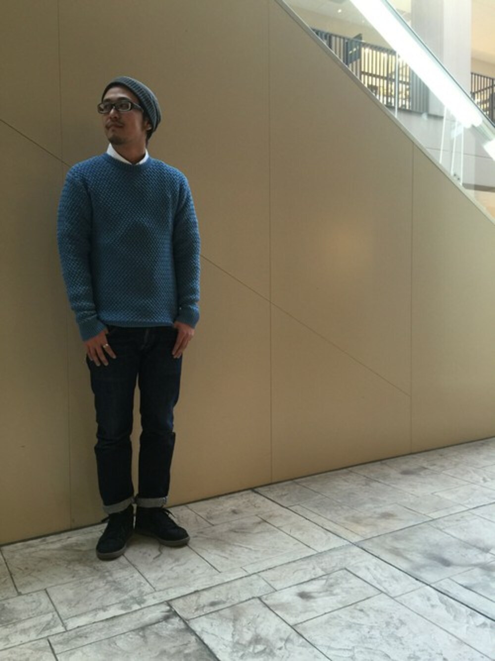 DENIME THE STORE アーバンドッグららぽーと豊洲のニット/セーター「【M&S】インディゴバケットクルーネックニット」を使ったコーディネート