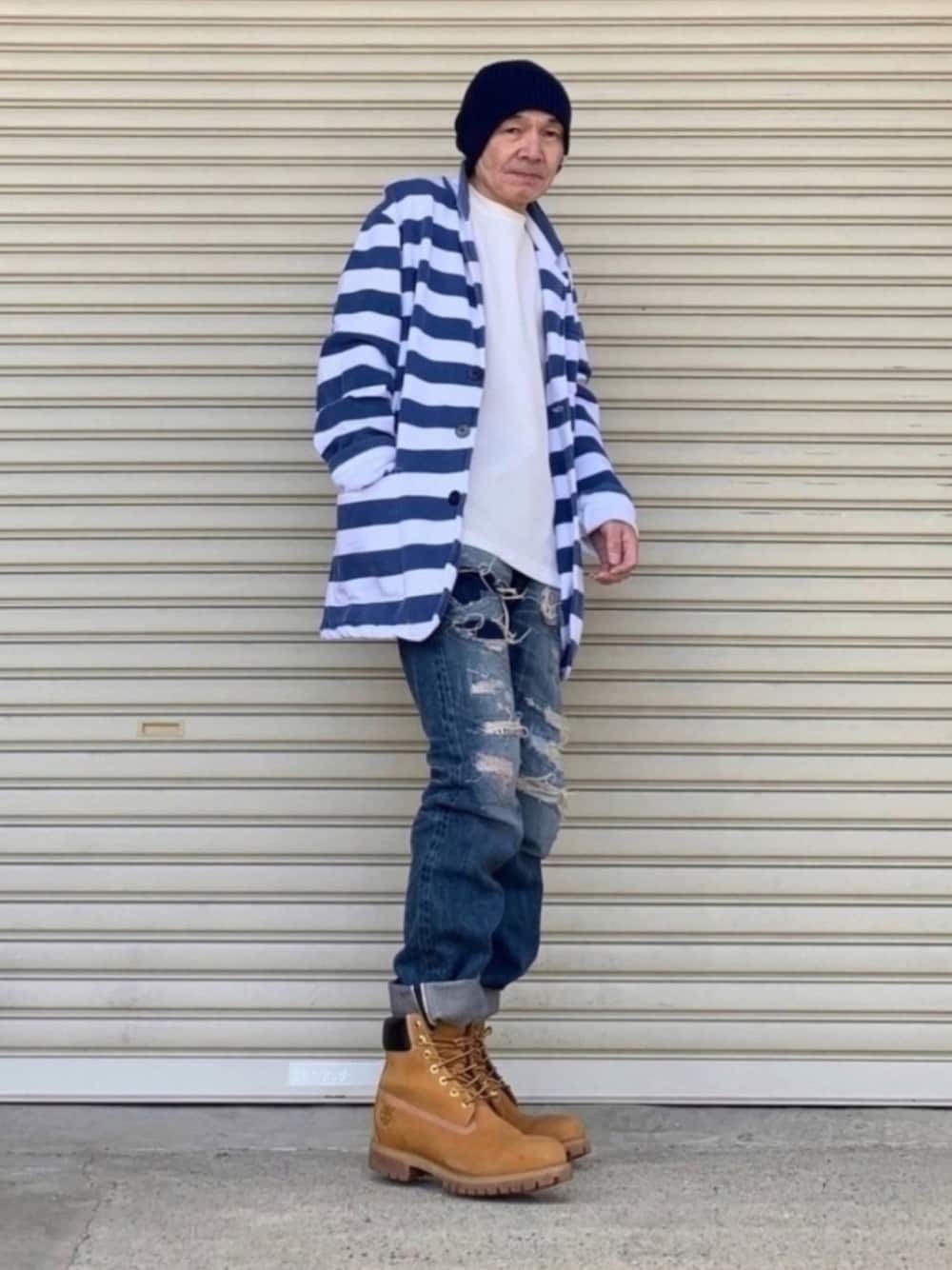 スエット地のジャケットです。 夏用?冬用?よくわかりません💦。 でもとっても暖かです。 ダメージデニム、ブーツとってもお気に入りのため再々登場します。悪しからず。