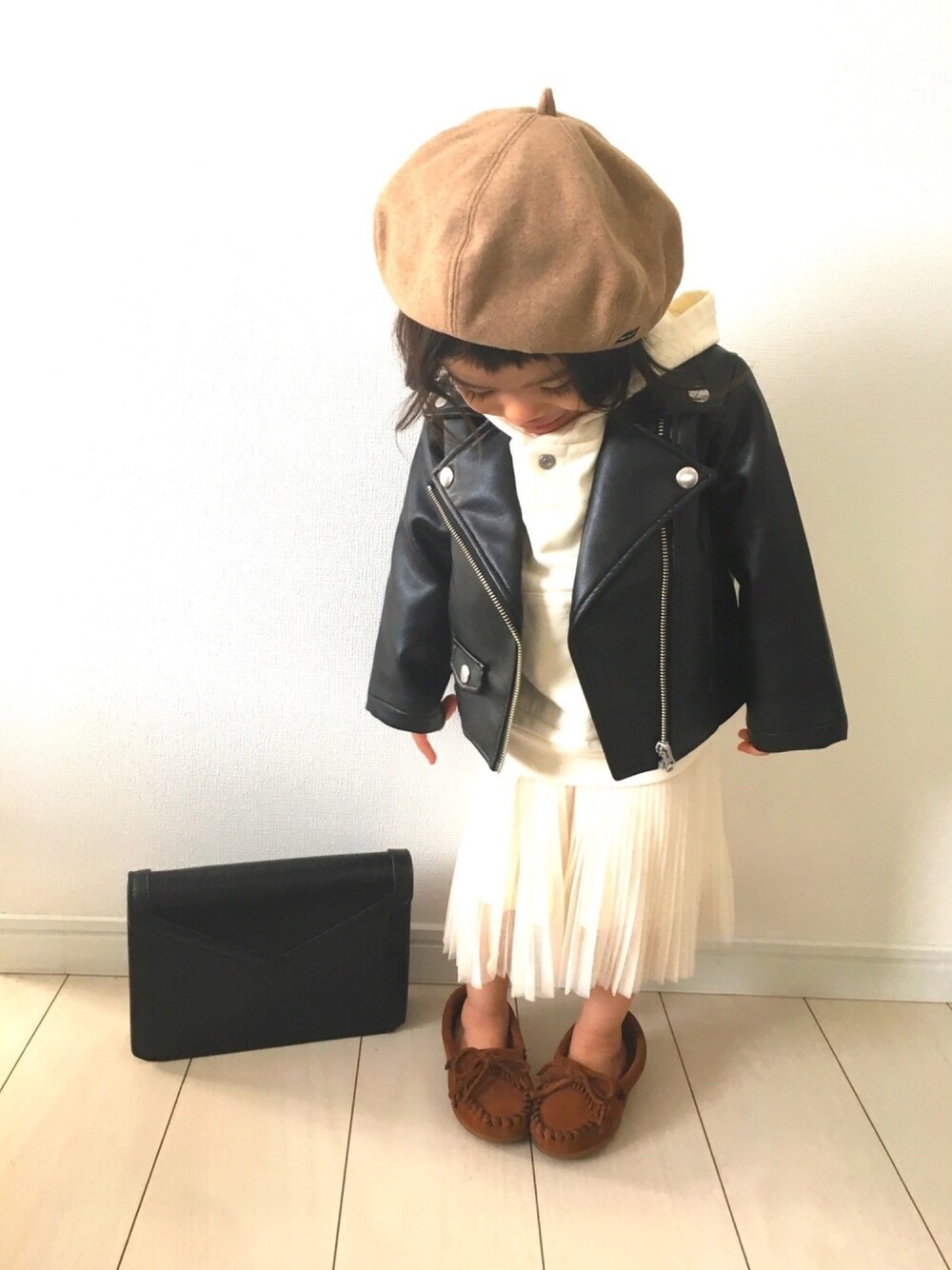 ライダース×パーカー×ふわふわスカート♡ 欲しかった白パーカー、ゲットだぜ! 春らしくて良い感じ(*´꒳`*)