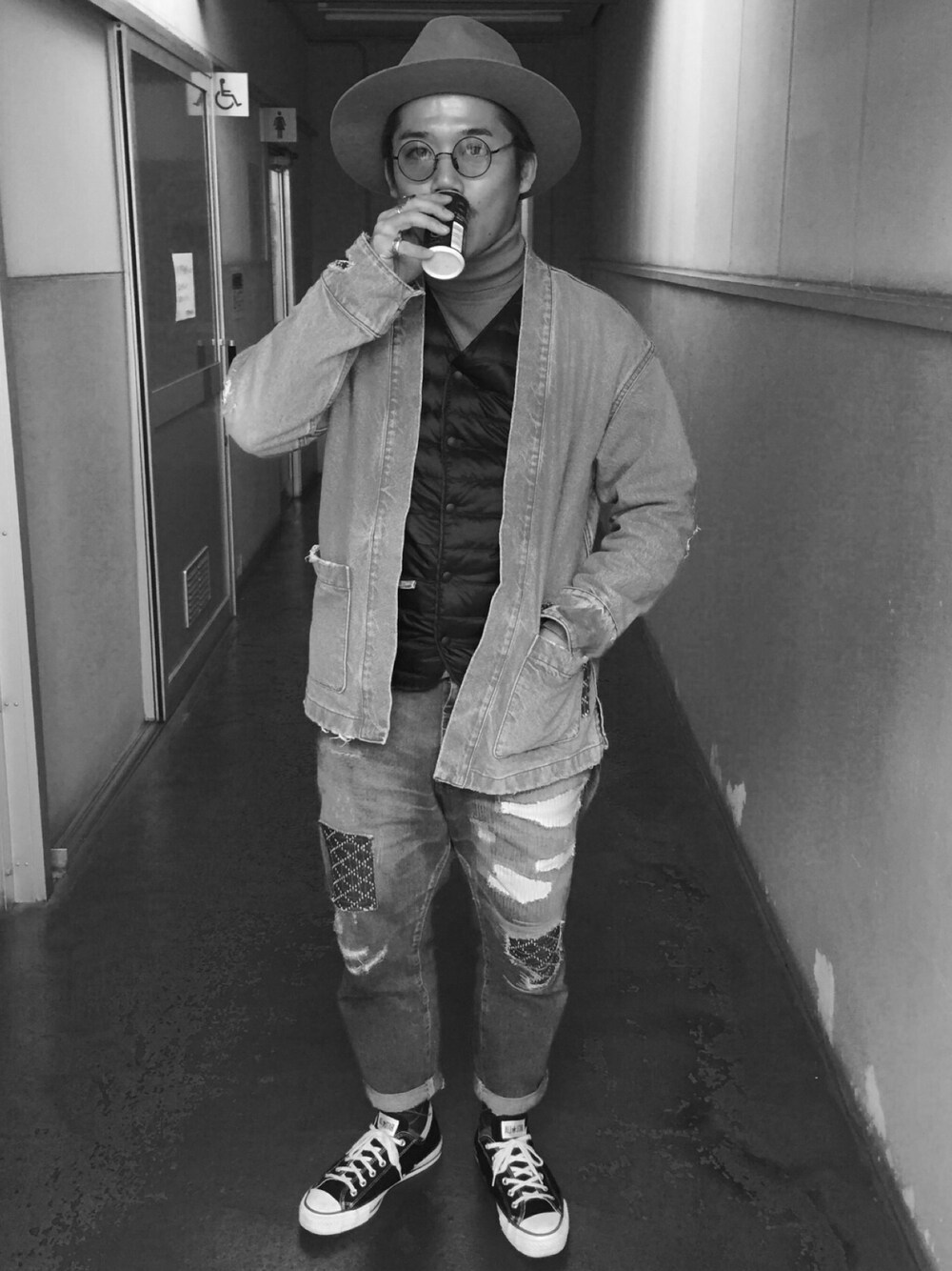 男旅で1人ずつ撮った白黒写真。 前回のコーデと何も変わりませんw