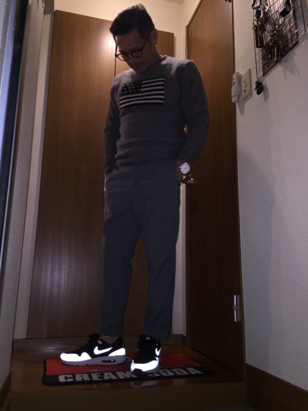 shinのニット/セーター「【OCEANS12月号掲載】ビーミング by ビームス / 星条旗クルーニット」を使ったコーディネート