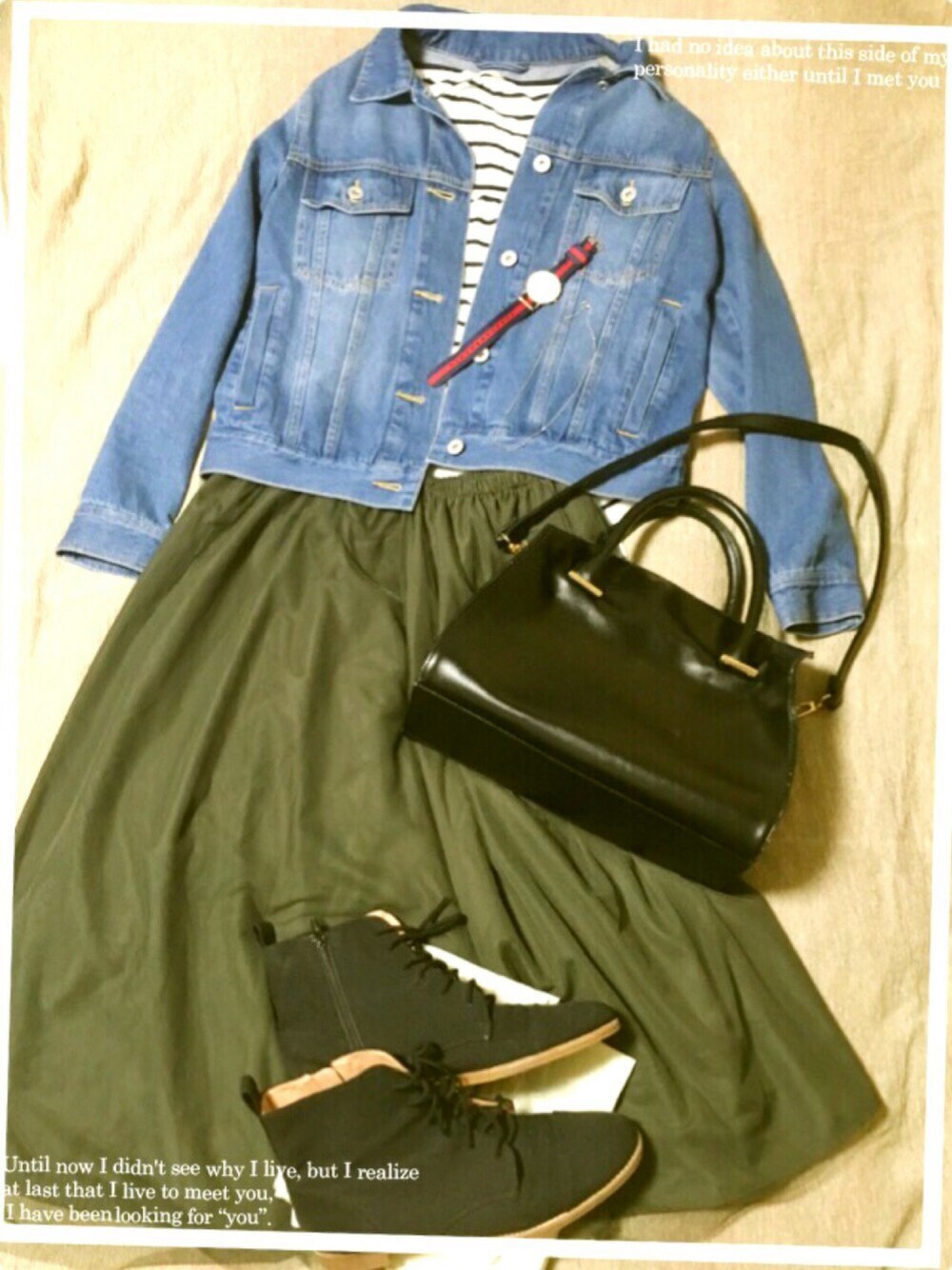 🍎デニムジャケットコーデ🍏 ジャケット☞GU トップス☞earth music & ecology スカート☞グローバルワーク 靴☞オリエンタルトラフィック 鞄☞ロペピクニック アクセサリー☞Forever21 時計☞DW お休みの日に秋らしくジャケットを着ました🎵 デニム×カーキのチュールスカート×ボーダーとってもいい感じです🐈
