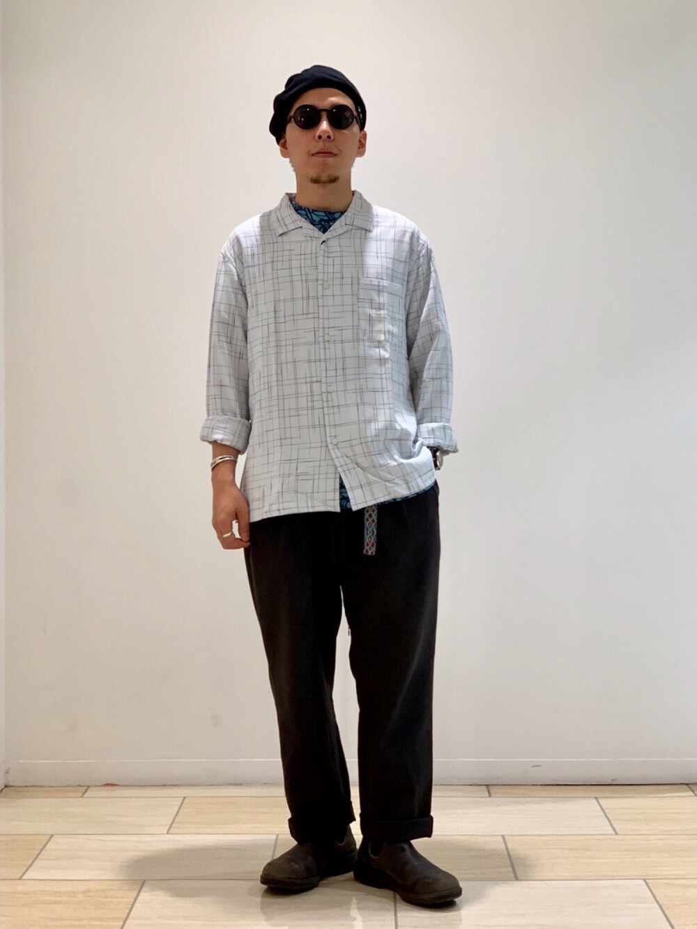 長袖の開襟シャツがヘビロテです! 長袖シャツもロングパンツも素材を選べば夏でも着れます!