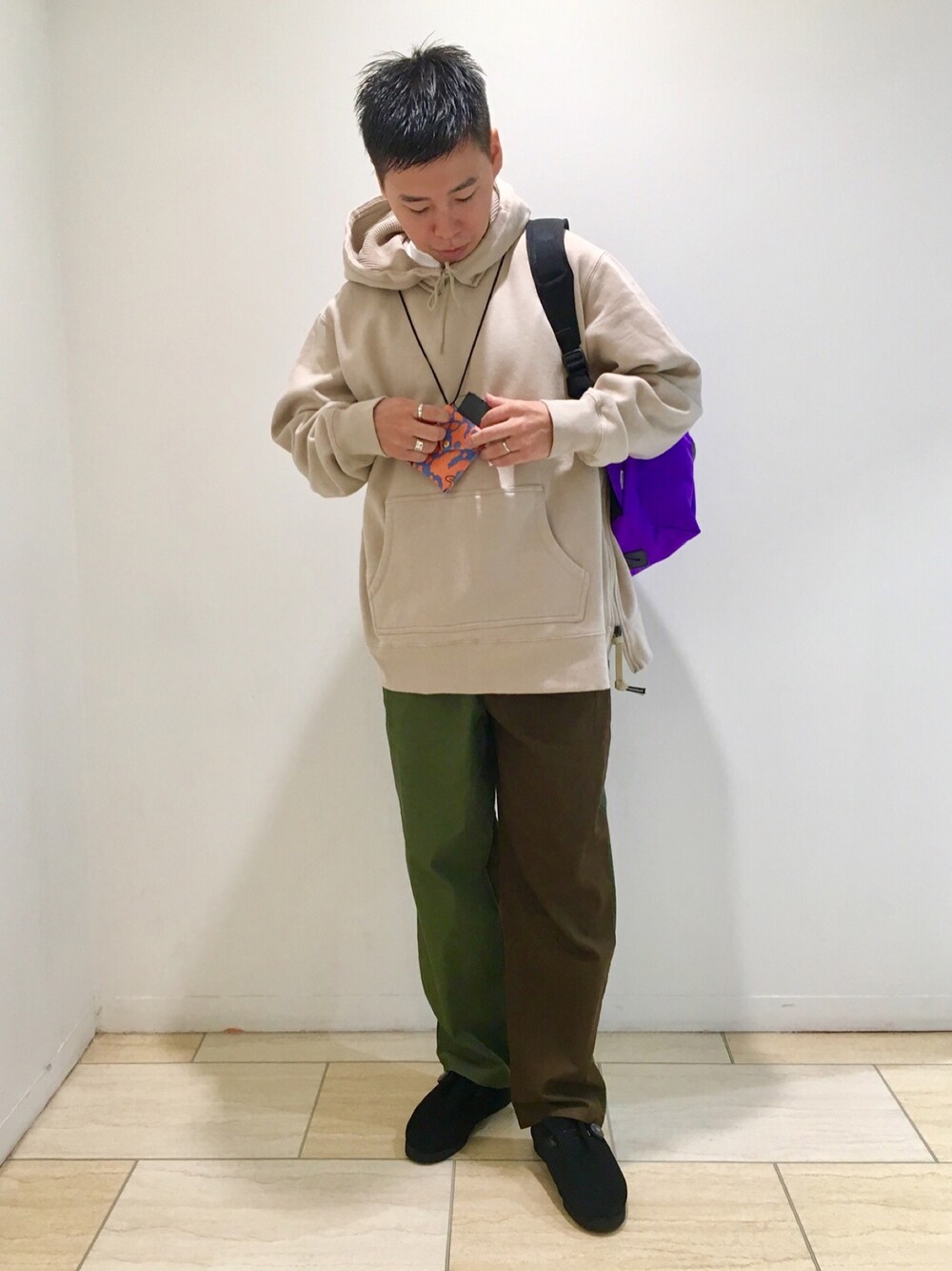 クレイジーカラーのコーデュロイパンツは分厚すぎない生地が今の季節に丁度いい🙆♂️シンプルなパーカーと合わせるのが自然🍁
