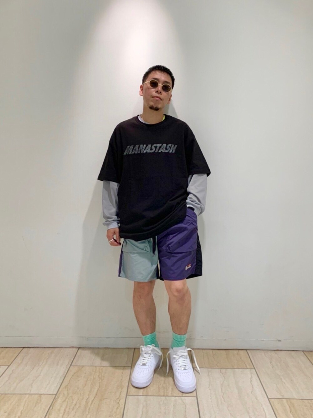 funato(BEAVER 名古屋パルコ店)のTシャツ/カットソー「MANASTASH N.A.U/マナスタッシュエヌエーユー CEMENT LOGO TEE セメントロゴティー」を使ったコーディネート