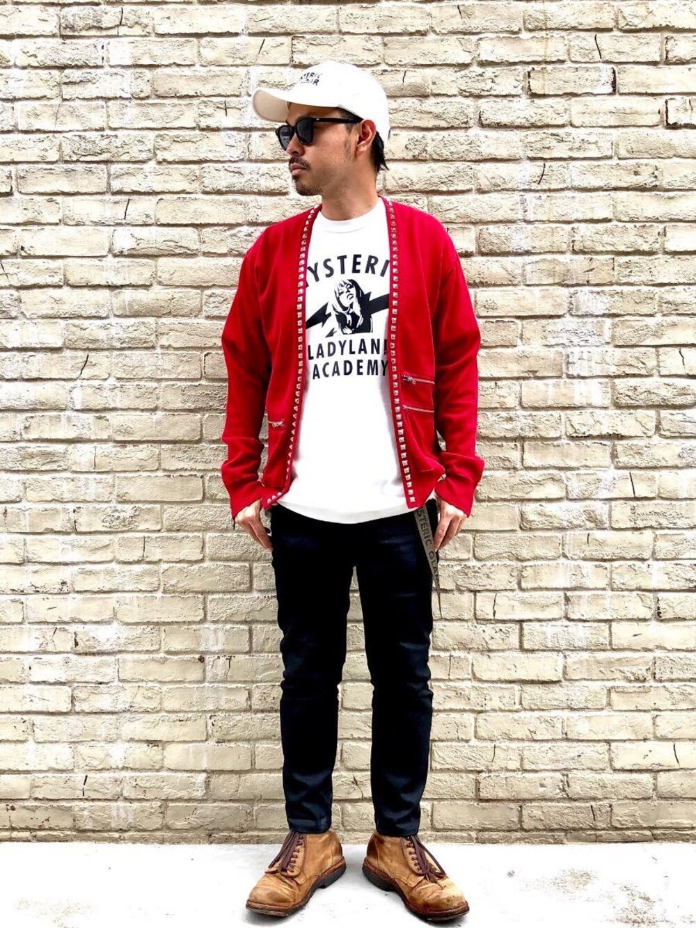 H(HYSTERIC GLAMOUR大阪店)のキャップ「HYS SYMBOL LOGO 刺繍キャップ」を使ったコーディネート
