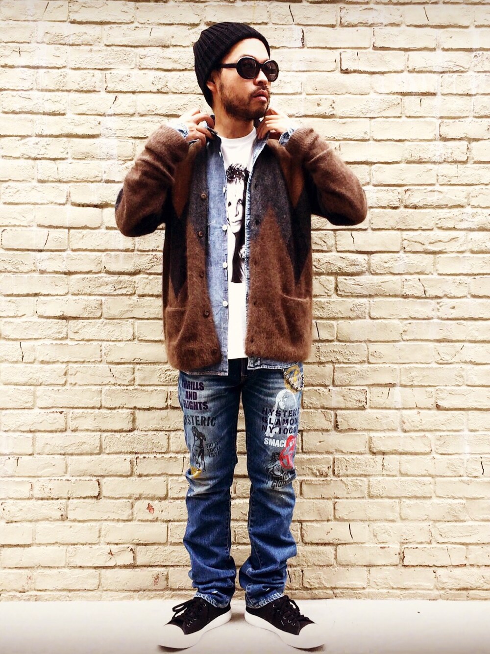 H(HYSTERIC GLAMOUR大阪店)のニットキャップ/ビーニー「WARREN SCOTT×HYSTERIC/C/W MIX YARNワッチキャップ」を使ったコーディネート
