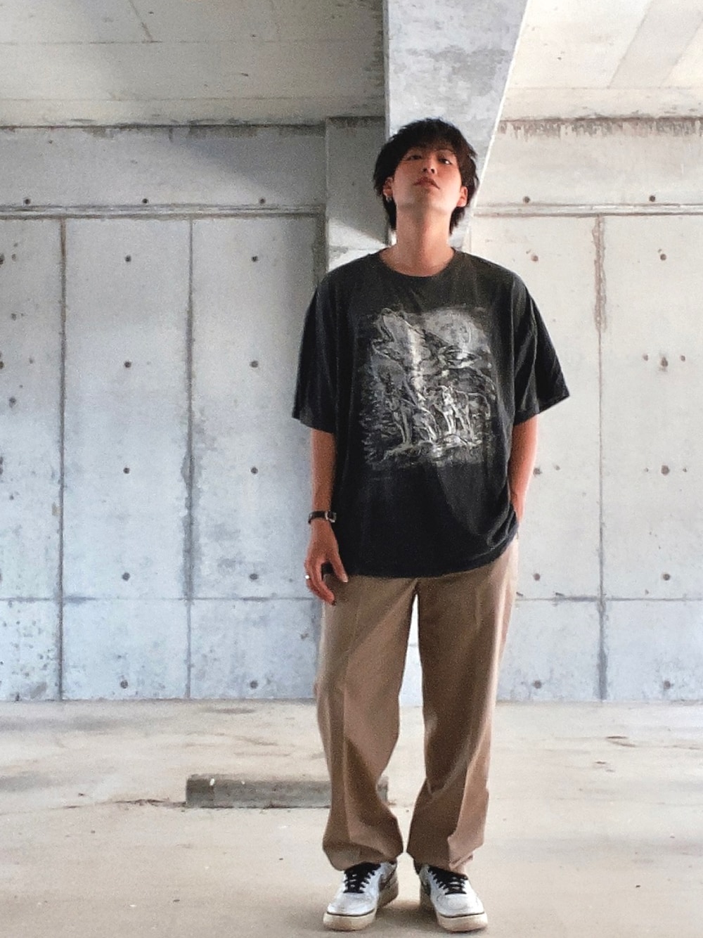 オオカミTシャツをやっと古着屋で見つけたのでスケーターっぽくコーデしてみました。