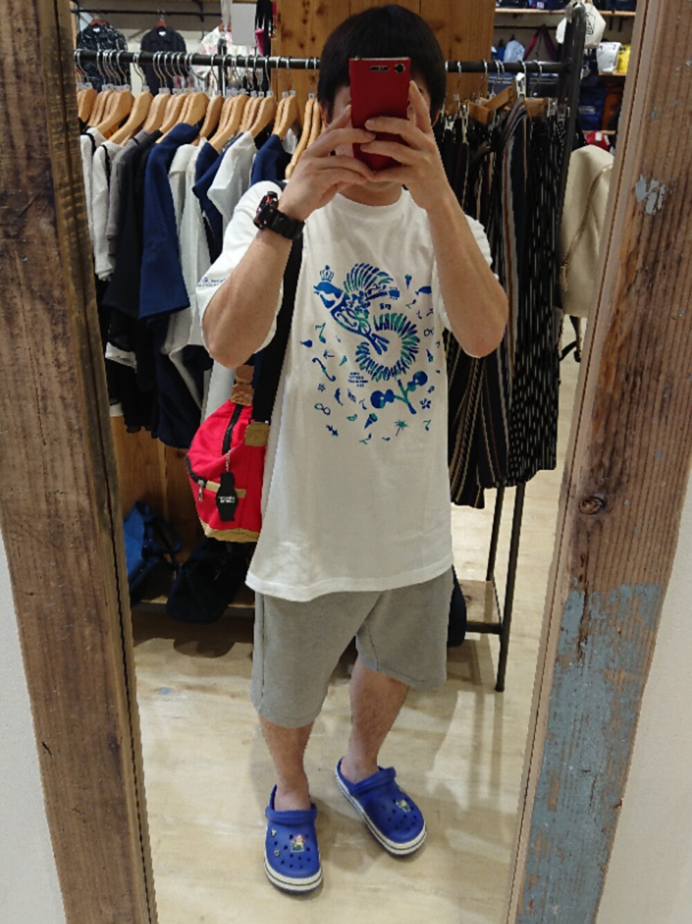 ラフな服装でお買い物~🎵 MEET THE WORLD BEAT2016のTシャツをおろしました。 2年前は太っていたので・・・ TシャツはLサイズです。 この前買ったcrocsが青色なのでTシャツと合わせてみました🎵