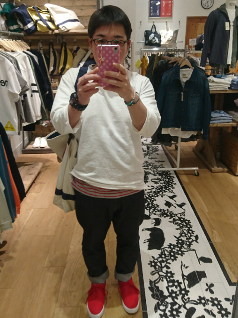 シャツは新作を着ました。 今日は暖かかったので 春コーデで出掛けました🎵 ブレスレットは去年の夏モデルです。 パンツはイージースリムジーンズです😃