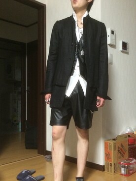 レイヤードジャケット(テーラードジャケット、ブラック系)」を使った、シンジさん(メンズ)の春コーディネート