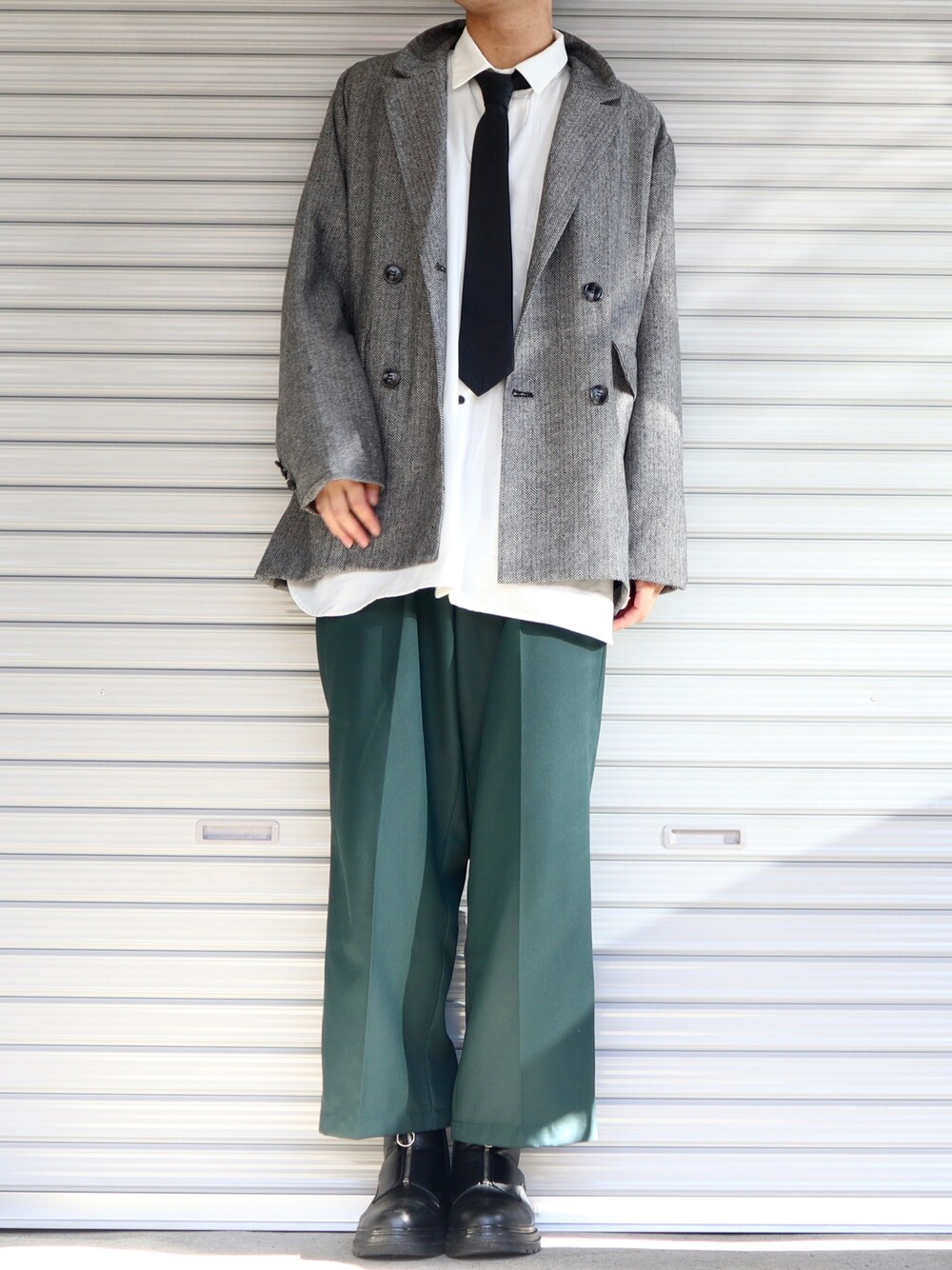 Shinのテーラードジャケット「へリンボーンダブルテーラードジャケット」を使ったコーディネート
