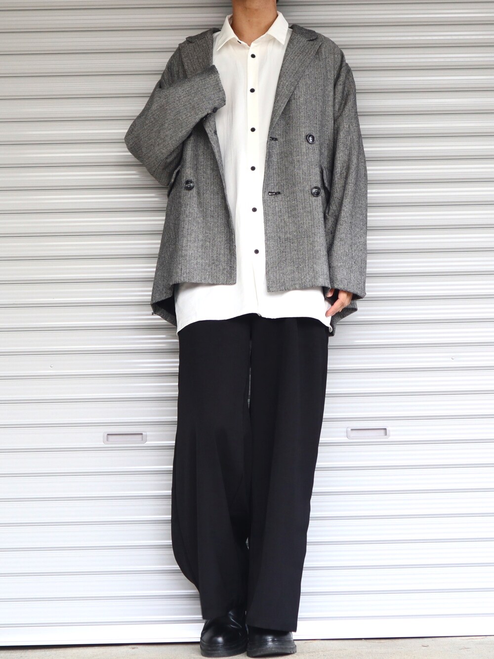 Shinのテーラードジャケット「へリンボーンダブルテーラードジャケット」を使ったコーディネート