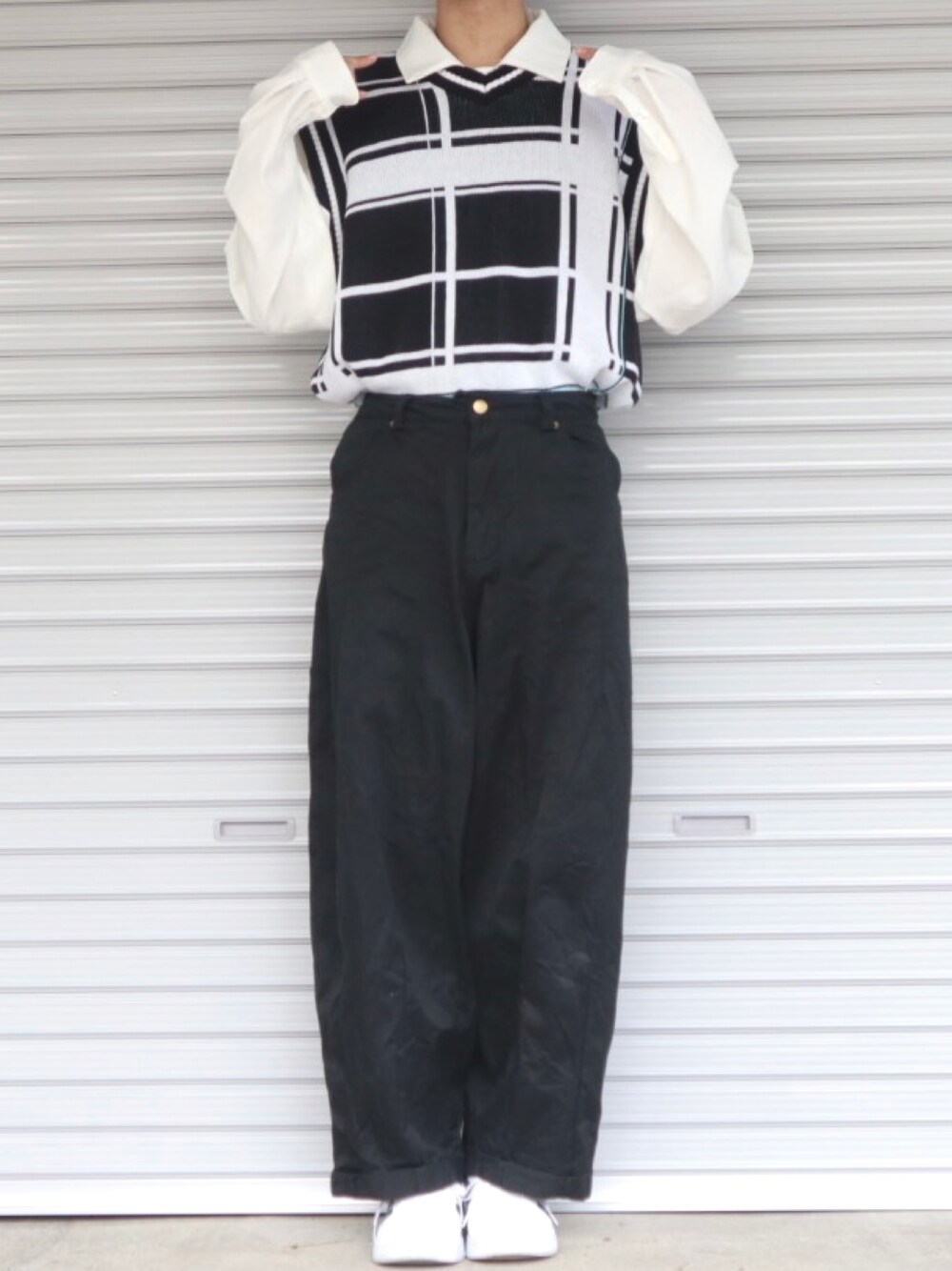 Shinのベスト「EDEL - ラインチェックニットベスト」を使ったコーディネート