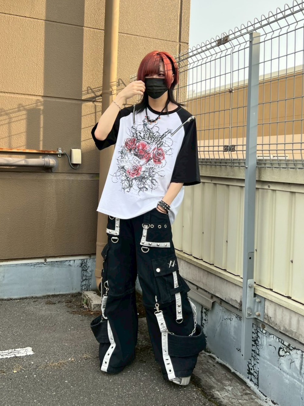 A'GEM/9越谷レイクタウンのTシャツ/カットソー「『REFLEM/レフレム』薔薇プリントラグランTシャツ/ハーフスリーブカットソー」を使ったコーディネート